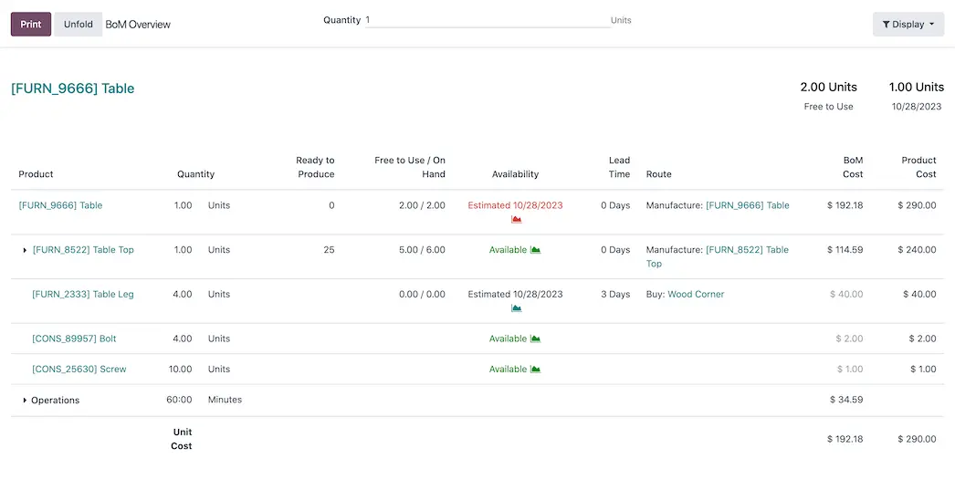 Simulate manufacturing orders with real-time capacity planning, components availability, and cost control. Get just-in-time replenishment propositions and choose how to fulfill parts: make or buy, sub-contract, deliver from another warehouse, etc...read more